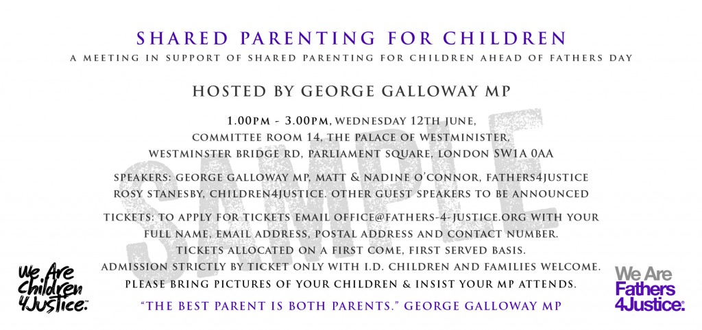 A meeting in support of shared parenting for children ahead of Fathers Day. Hosted by George Galloway MP.