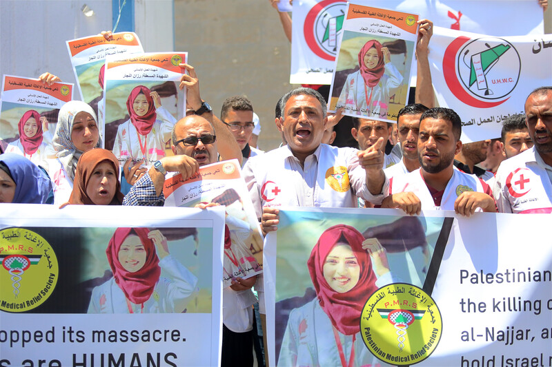 Volunteer paramedic Razan al-Najjar, 21, was shot and killed while helping to treat and evacuate wounded protesters east of Khan Younis in southern Gaza on 1 June. She was the second paramedic to be killed during the Great March of Return.