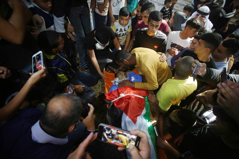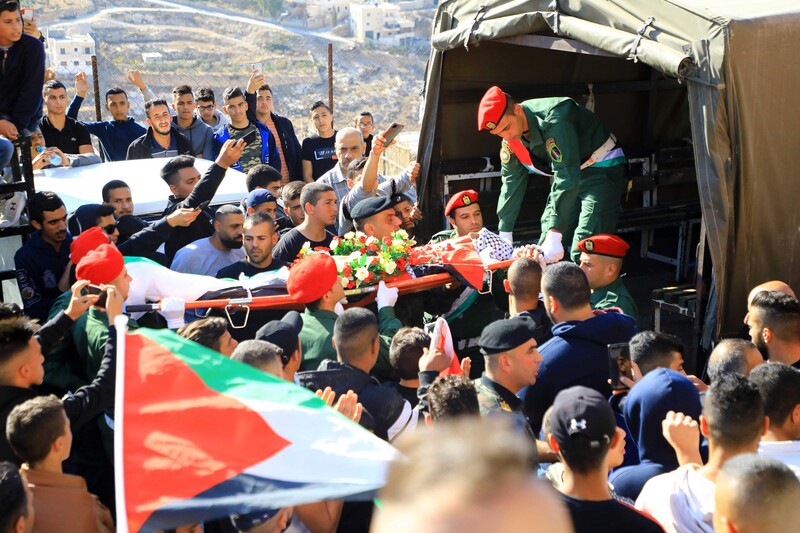 Mourners carry the body of Muhammad Dadas, 15, who was killed by Israeli forces near the West Bank city of Nablus the previous day, during his funeral on 6 November.