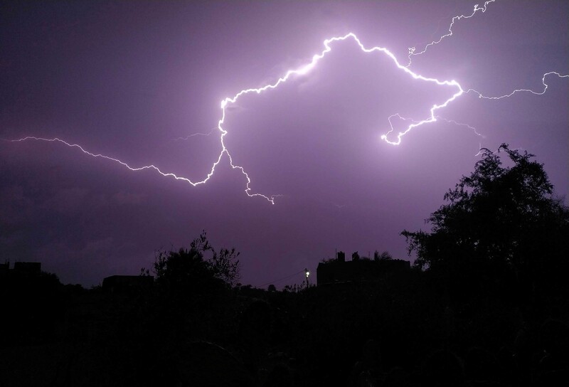 Lightning flashes across the Gaza City sky during a rainstorm on 20 November.