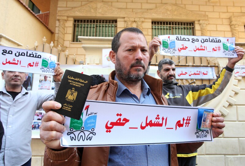 Palestinians rally in front of UNSCO headquarters in Gaza City to demand family reunification on 22 November. Israel denies family reunification to Palestinians as part of its efforts to demographically engineer Palestinian society to facilitate its apartheid and colonial rule.