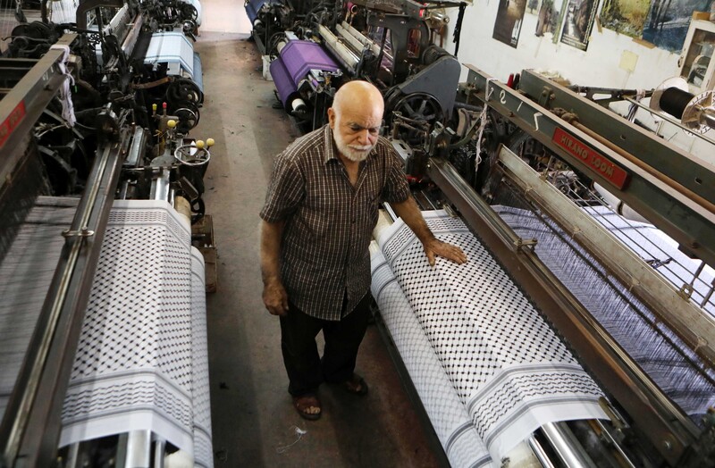 A Palestinian man works at a kuffiyeh textile factory in the West Bank City of Hebron on 22 November.