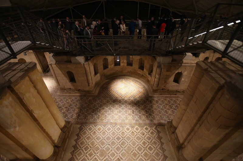 Palestinian Authority Prime Minister Mohammed Ishtayeh attends the opening of Hisham Palace in the West Bank city of Jericho on 23 November. The archaeological site dating from the Umayyad period was reopened after a five-year restoration project on its mosaic floor.