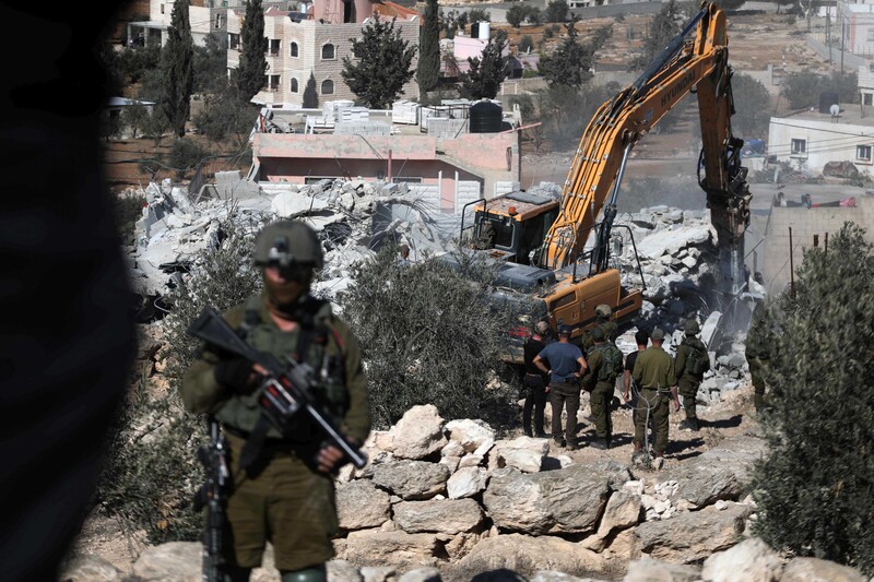 An Israeli bulldozer demolishes a Palestinian home under the pretext that it was built without a permit in Yatta, south of the West Bank city of Hebron, on 23 November. Israel rarely grants building permits to Palestinians in so-called Area C — some 60 percent of the West Bank under full Israeli military control.