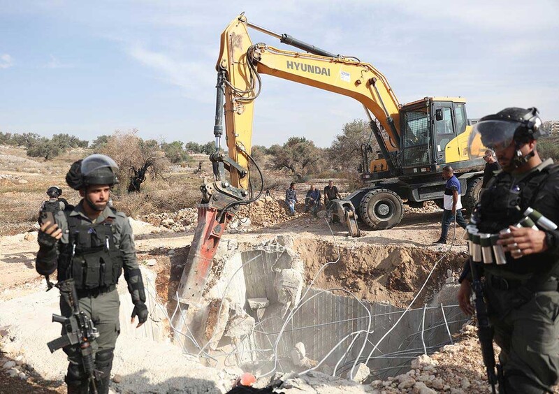 Israeli occupation forces destroy a well in the village of Nilin, near the West Bank city Ramallah, on 29 November.