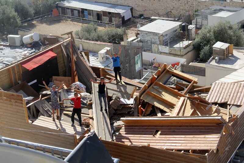 Palestinian children stand on the ruins of a home demolished by Israeli occupation forces on the pretext that it was built without a permit in the East Jerusalem neighborhood of Silwan on 30 November.