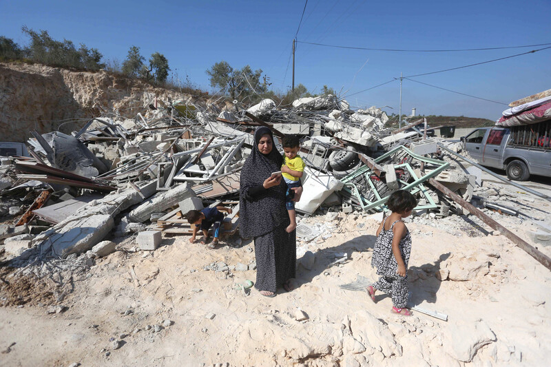 A Palestinian woman stands near the rubble of a home demolished by Israeli troops in Sebastia, a town near the West Bank city of Nablus, on 2 August.