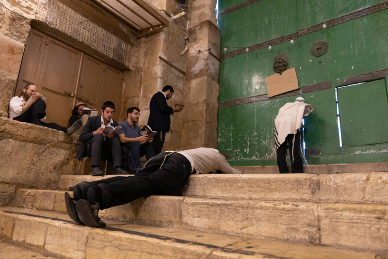 Israelis pray at one of the gates of the al-Aqsa compound during the Tisha B’Av Jewish day of mourning, 7 August. More than 2,000 Jews visited the holy site, including the extreme right lawmaker Itamar Ben-Gvir in what was widely viewed as a provocative move.