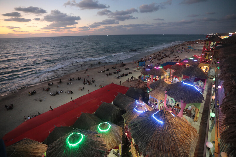 Palestinians enjoy an evening at the beach days after a ceasefire between Israel and Islamic Jihad in Deir al-Balah, central Gaza Strip, on 12 August.