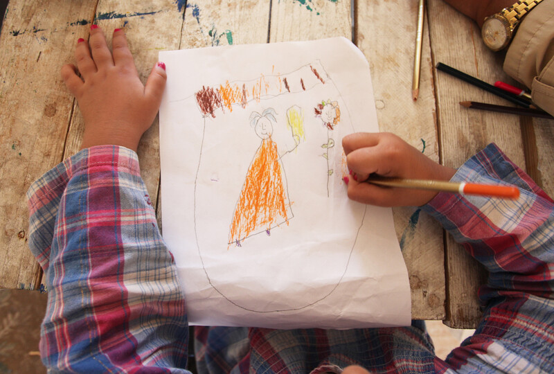 A Palestinian child draws as part of an activity organized to psychologically support children in Gaza City on 15 August.