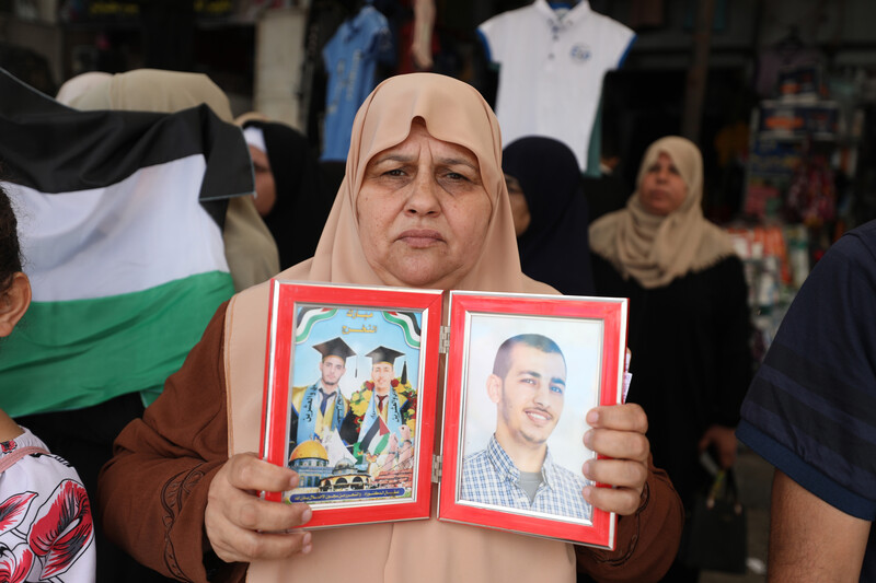 Palestinians protest in solidarity with prisoners held by Israel during a demonstration in Jabaliya refugee camp, northern Gaza Strip, on 28 August.