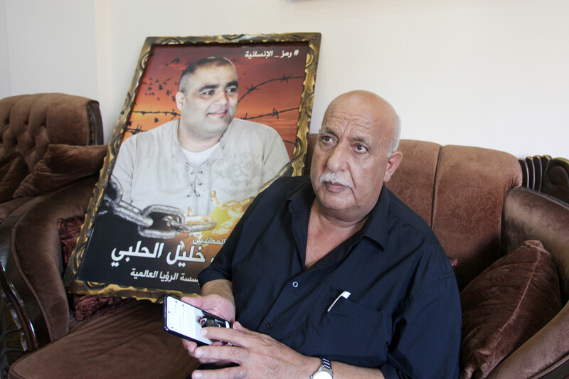 Khalil El-Halabi, the father of Mohammed El-Halabi, displays a photo of his son on his phone at his Gaza City home on the day that Mohammed was sentenced to 12 years in prison by an Israeli court. El-Halabi, the Gaza head of the international Christian charity World Vision, was convicted after an internationally condemned trial lasting six years.