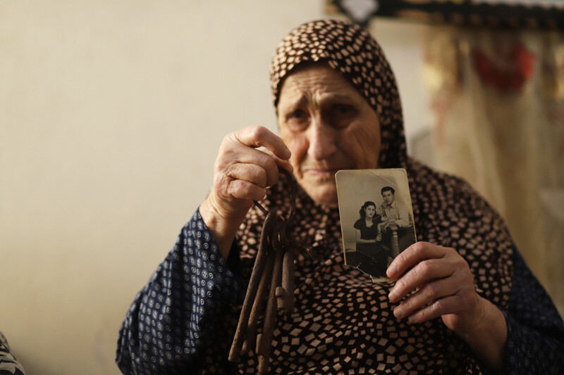 Palestinian refugee Ibtihaj Dawla shows the keys to the home from which her family was expelled during the ethnic cleansing of Palestine in 1948 in her home in Gaza City, 8 May. The ongoing dispossession of Palestine, commemorated in mid-May, is known as the Nakba or “catastrophe” by Palestinians.