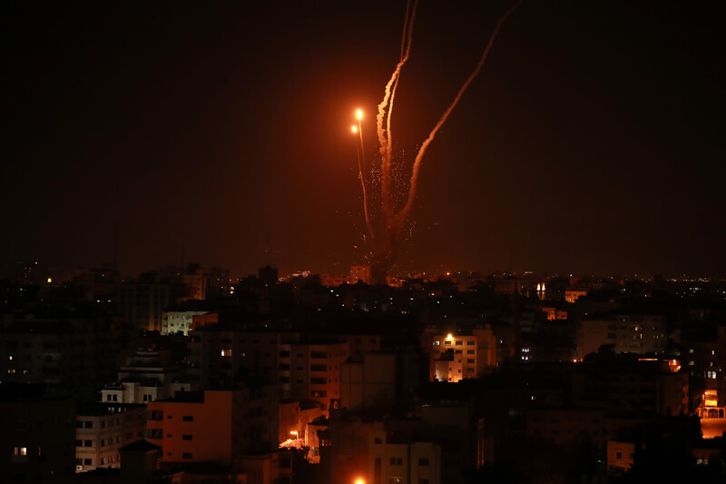 Palestinian resistance groups launch rockets from the Gaza Strip following Israeli strikes on 10 May.