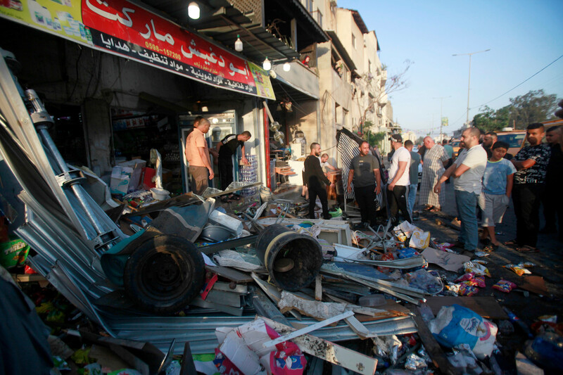Palestinians inspect the damage following an Israeli army raid in Nur Shams refugee camp, near the West Bank city of Tulkarm, on 30 May.