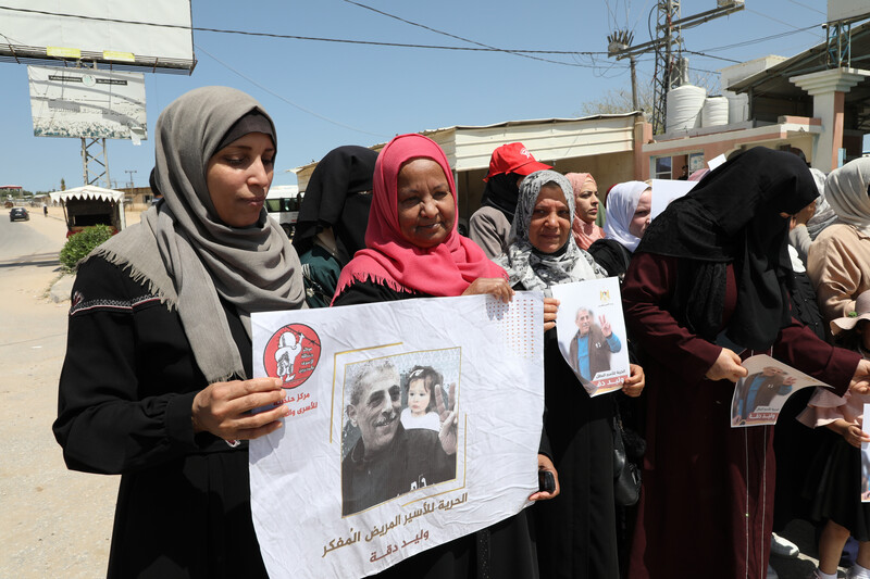 Palestinians protest in solidarity with terminally ill prisoner Walid Daqqa in front of the Erez checkpoint in Beit Hanoun, northern Gaza Strip, 31 May. Israel refuses to release the 61-year-old, despite how he has an advanced stage of bone marrow cancer. Daqqa was imprisoned by Israel in 1986 over his alleged involvement in the killing of an Israeli soldier and was sentenced to 37 years in prison. He completed his sentence in March 2023 but Israeli authorities had extended his sentence by two years in 2017 over charges of smuggling cell phones into prison.