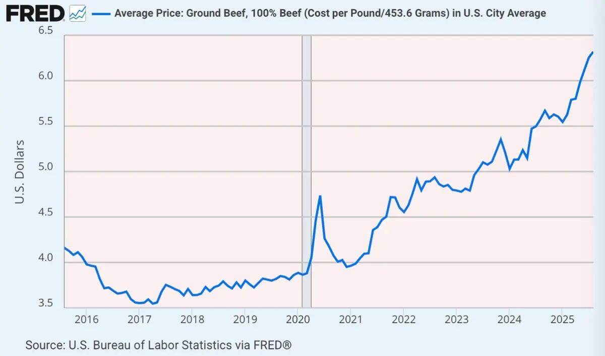 This could become a huge problem for the Trump administration. If inflation in food prices and beef in particular keep going like this, there is a genuine risk to the presidency and the entire Republican Party. People who are not actually very political tend to judge the party in power by how much they have to spend at the grocery. If they find themselves switching from beef to rice and beans, they will blame the ruling party regardless.